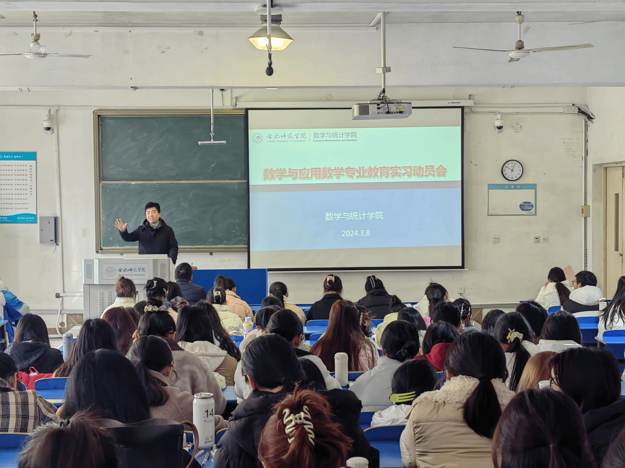 3月8日上午,AC米兰中文官方网站在逸夫楼A101教室召开2021级数学与应用数学专业教育实习动员大会。学院党委副书记陶金昌、副院长黄浩,2021级数学与应用数学师范专业全体学生参加本次动员会。会议由辅导员曾飞主持。