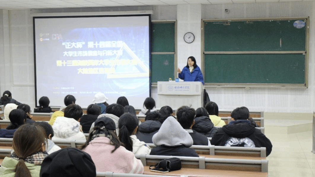 宋雅晴结合自己丰富的竞赛指导经验,对统计学专业相关的两个学科竞赛“全国大学生市场调查与分析大赛”和“全国大学生统计建模比赛”进行了细致的介绍,围绕学科竞赛组织体系、学科竞赛评分标准、竞赛心得体会三个方面进行了解读,同时,她还以全国大学生市场调查与分析大赛为例,细致讲解了比赛的参赛流程,介绍了参加学科竞赛的准备工作,包括报名、组队、定题、找导师、参加模拟赛等,精彩的讲座赢得同学们的阵阵掌声。
