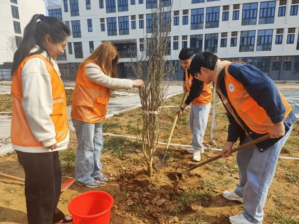 植树节前夕,学院组织各班团支部开展“相聚团旗下,植树正当时”义务植树活动。团员们分工协作,扶植树苗,挥锹铲土,培实新土,每一个环节都精心对待,整个植树现场一片热火朝天的劳动景象。经过大家的努力,一排排新栽下的树苗错落有致、迎风挺立,展现着勃勃生机,为春光明媚的三月增添了一份活力。