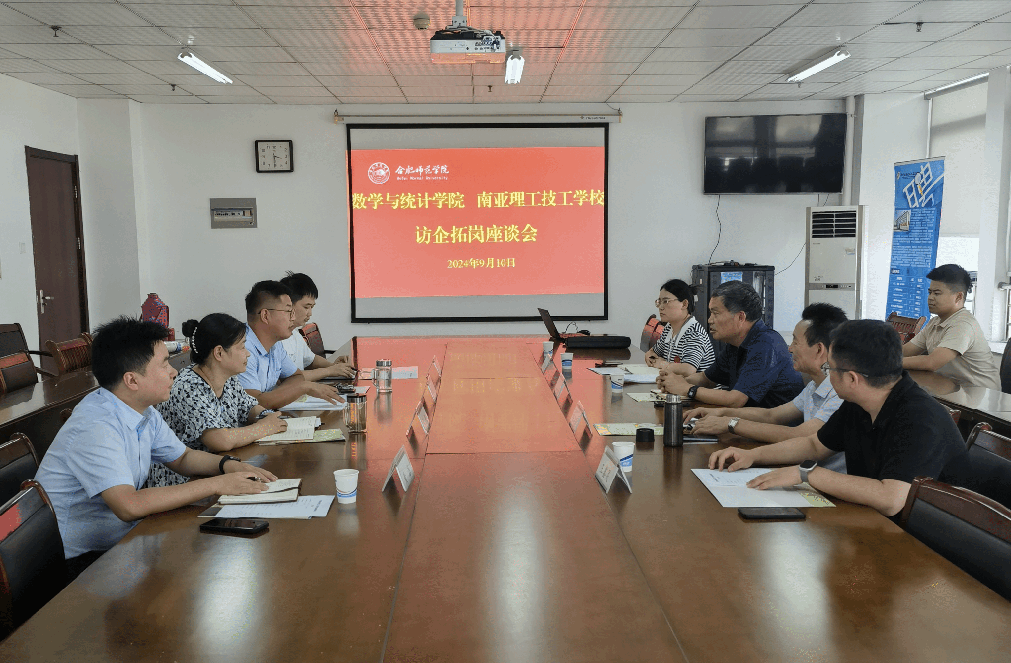 为落实教育部、安徽省教育厅关于“访企拓岗”促就业专项行动工作部署要求,进一步开拓毕业生实习就业岗位,促进2025届毕业生就业。9月10日下午在行知楼1102会议室,AC米兰中文官方网站与来访的合肥南亚理工技工学校开展“访企拓岗”座谈交流会。合肥南亚理工技工学校总校长汪永国、督学甘光生、教务处主任王鑫灵、校办公室徐璐璐,AC米兰中文官方网站党委书记穆娟、党委副书记陶金昌、副院长黄浩、辅导员曾飞参加座谈。