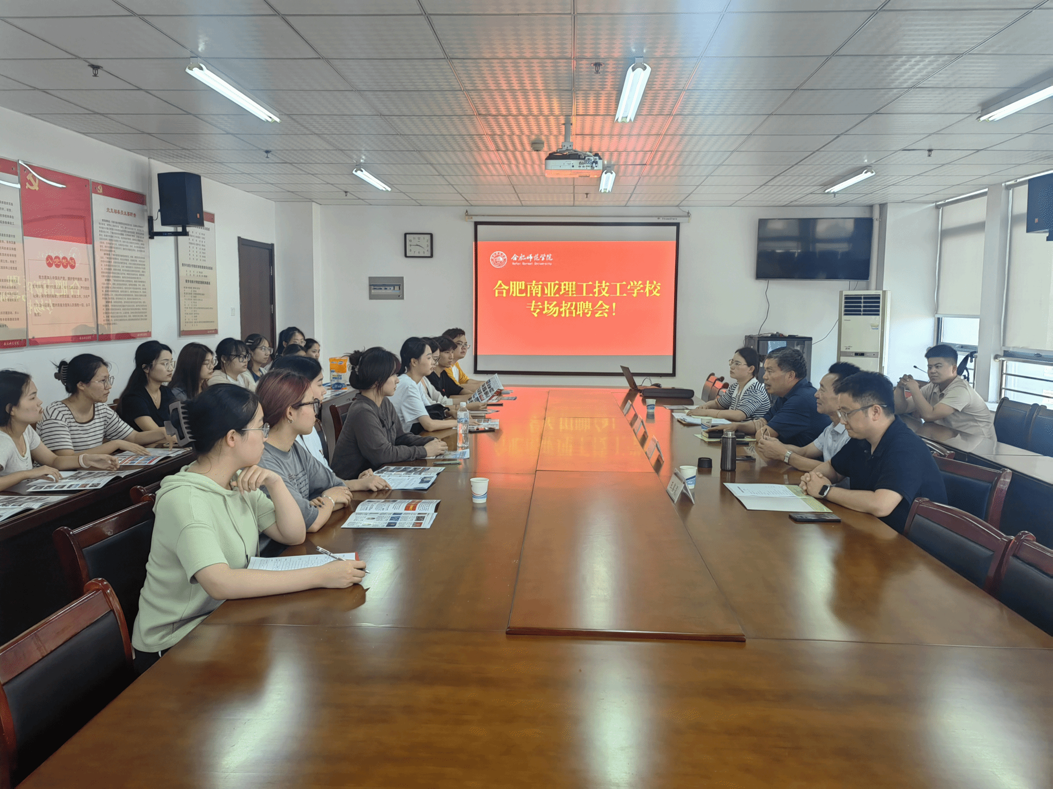 会后,合肥南亚理工技工学校进行了招聘宣讲,2025届数学与应用数学(师范)专业30余名毕业生参加,该校与学生现场进行了交流并收取了简历。