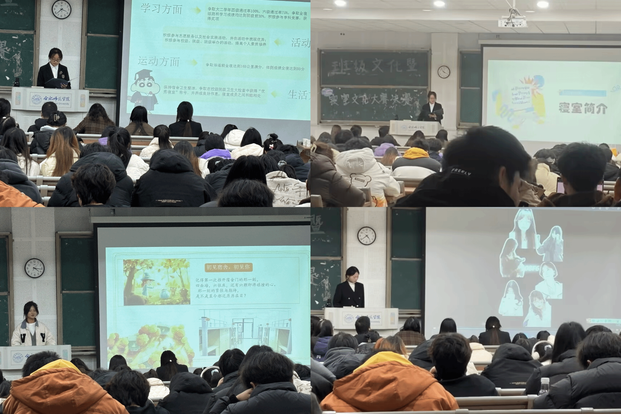 比赛过程中,各寝室精心准备,他们从成员介绍、寝室布置、寝室文化、寝室活动等多个方面展示了寝室特色。同时借助PPT和制作寝室微电影的形式向大家展现了寝室的和谐以及浓厚的学习氛围。