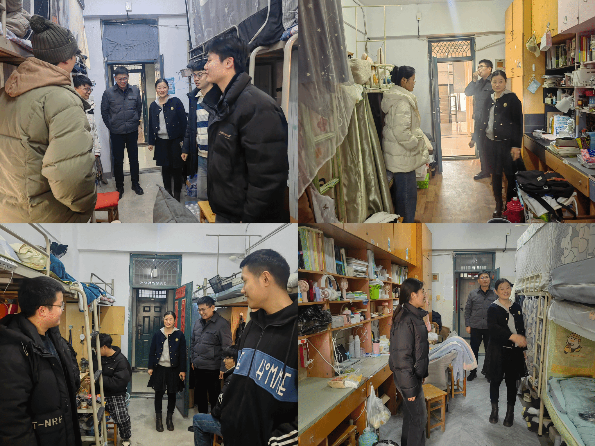 2月15日至16日,学院领导班子成员与辅导员队伍驻校值守,学院党委书记穆娟、副院长黄浩带队深入学生宿舍,开展走访慰问活动。每到一处,他们都与学生亲切交谈,询问他们的假期生活、新学期的学习规划以及遇到的困难和问题。