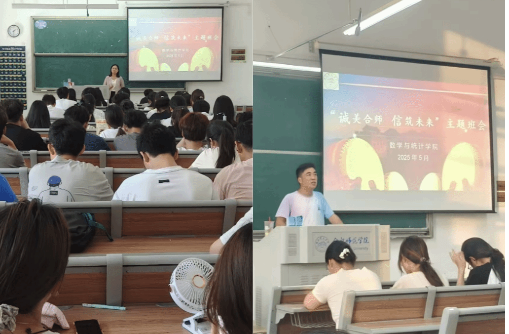 一堂班会话诚信。各年级辅导员精心筹备,将资助工作与思政教育深度融合,开展“资助诚信教育”主题班会。他们以案例剖析、视频展示为载体,聚焦诚信感恩教育,强化防诈骗与远离不良贷警示,引导学生树立规矩意识,提升辨别能力,争做诚信担当、心怀感恩的时代新人。