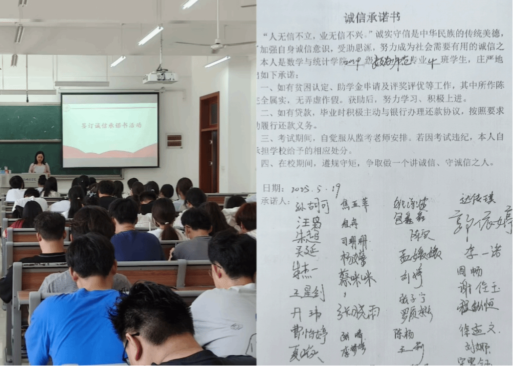 一句誓言铭责任。学院组织各班开展诚信励志宣誓活动,全体学生在辅导员或班长的带领下,以庄重的神情、激昂的语调宣读诚信誓词,用誓言传递对诚信美德的坚守。