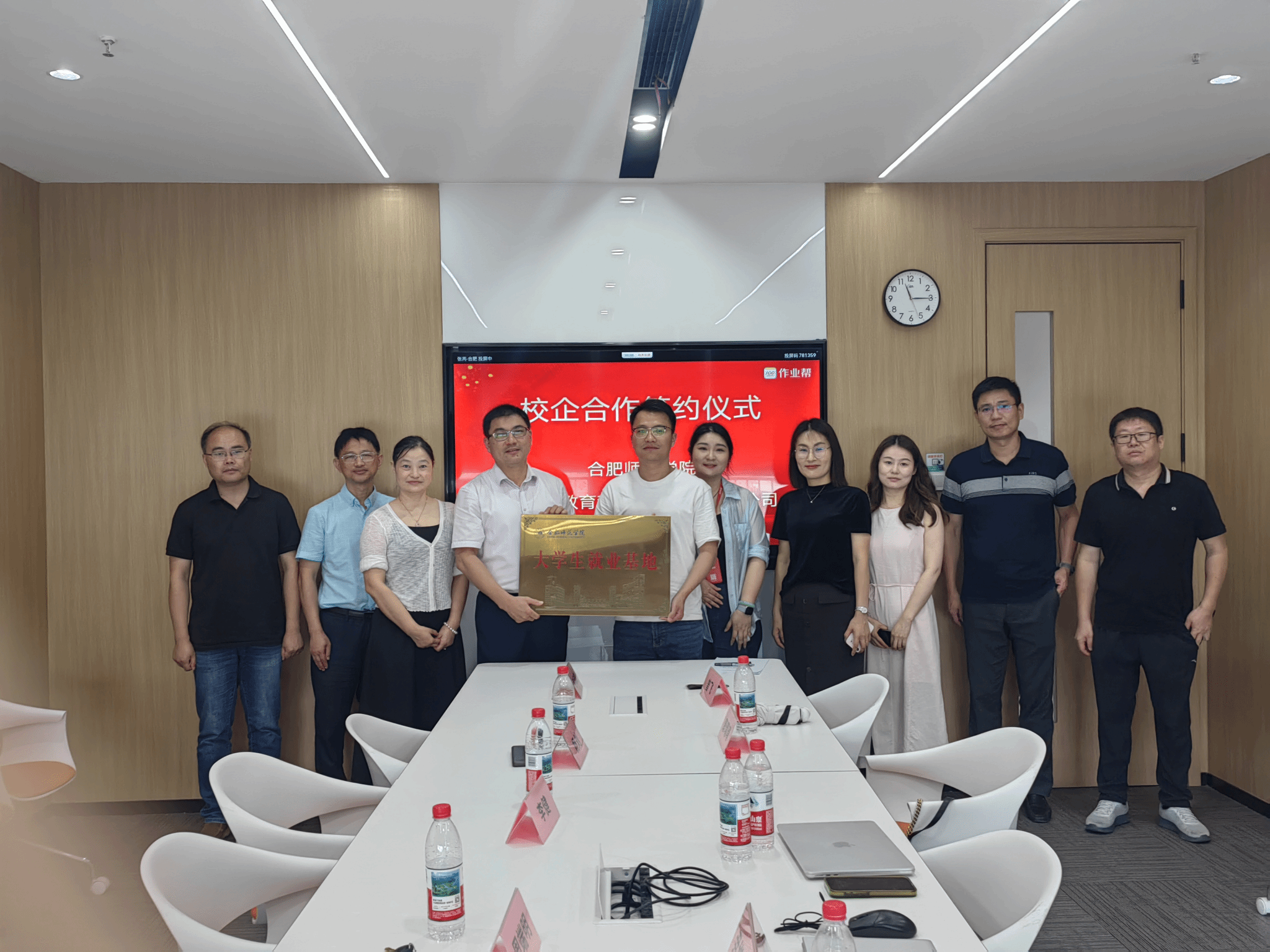 为深化产教融合、拓宽毕业生就业渠道。7月1日,AC米兰中文官方网站与作业帮教育科技(北京)有限公司在作业帮合肥基地正式签署共建实习就业基地协议并举行座谈会。AC米兰中文官方网站副院长周端明、就业创业工作处处长李健、AC米兰中文官方网站党委书记穆娟等一行七人与作业帮(合肥)校区校长王圣磊、人力资源主任张芮、校招负责人马鸿祚等企业负责人共同出席签约仪式。