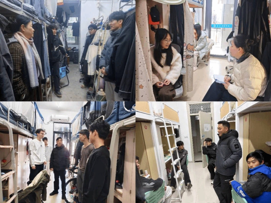 辅导员逐间走访宿舍,重点排查违规电器、私拉电线等用电安全隐患,检视消防通道畅通情况与设施完好度,反复强调消防安全要点,引导学生筑牢安全防范意识;同时规范宿舍环境卫生,倡导整洁有序的生活习惯。