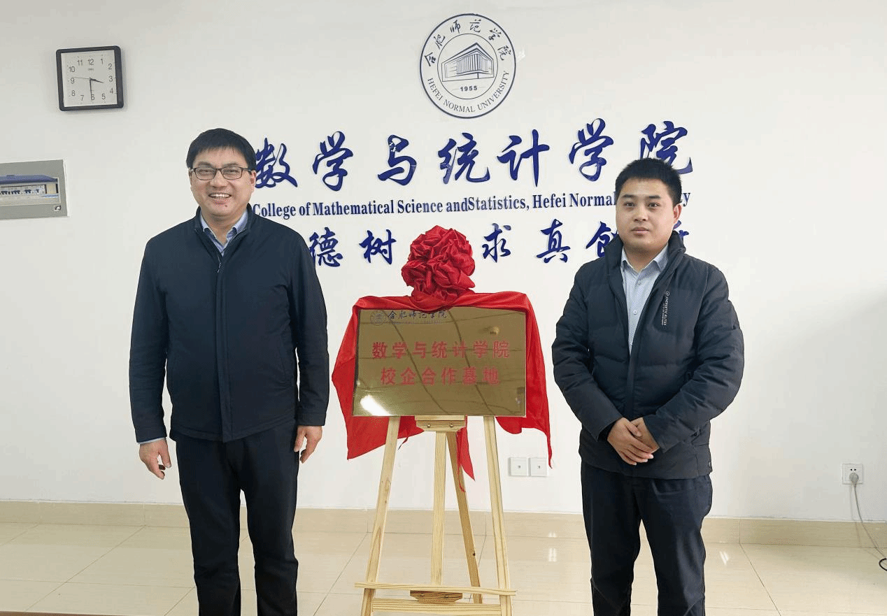 周端明与安徽博和利大数据服务有限公司总经理张锋为校企合作基地揭牌