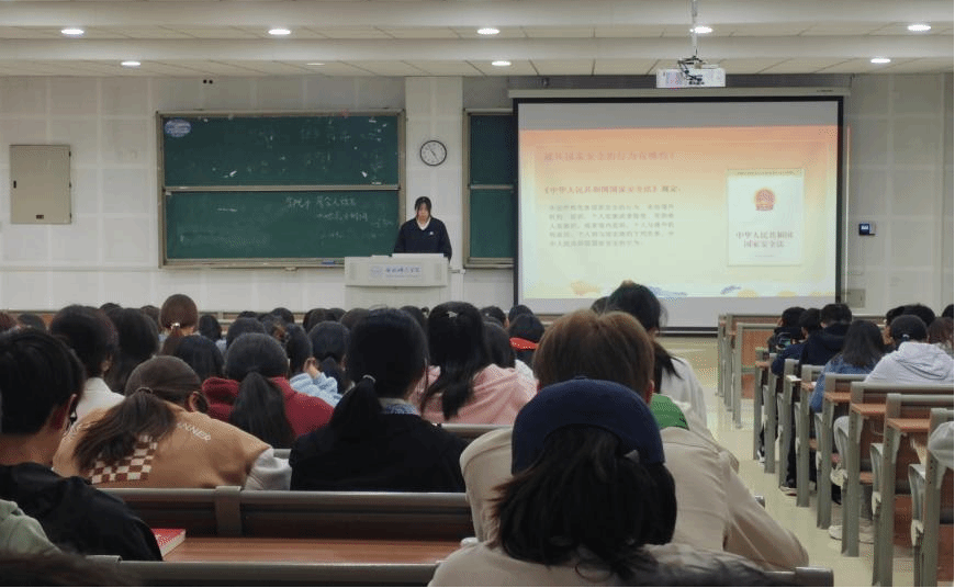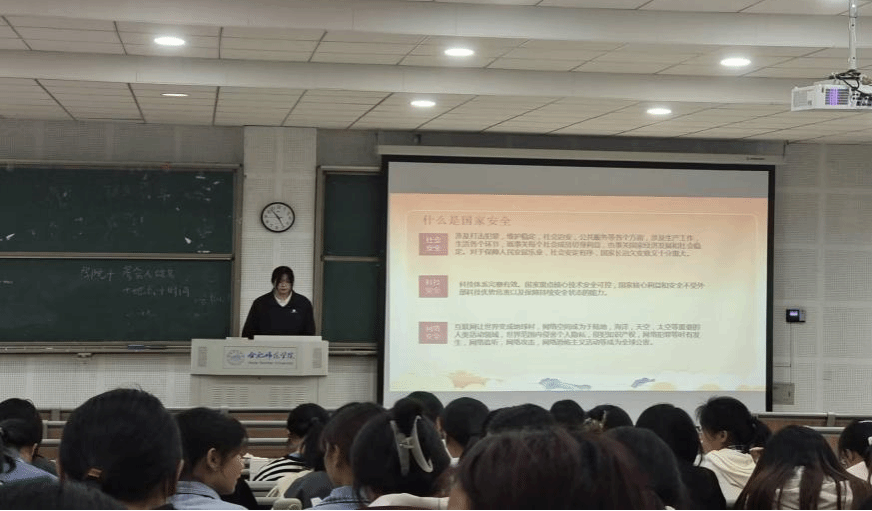 为深入贯彻落实习近平总书记关于加强国家安全教育的重要指示批示精神,提升师生国家安全意识和防范能力,4月12日,AC米兰中文官方网站在博学楼D101举办了国家安全教育专题讲座,活动由辅导员杨尔飞主持,2022级师范一班、退伍士兵胡靖雯同学领学,滨湖校区2022级同学参会。
