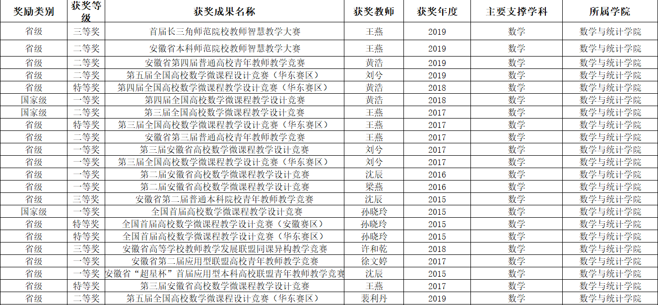 AC米兰中文官方网站2015-2019年教学获奖情况一览表