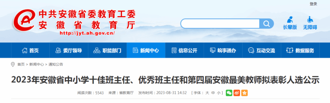据悉,本次安徽省中小学十佳班主任、优秀班主任和第四届安徽最美教师共有218位老师入选,他们将充分发挥教师队伍先进典型的示范引领作用,积极营造全社会尊师重教的良好氛围,激励广大教师争做有理想信念、有道德情操、有扎实学识、有仁爱之心的新时代“四有”好老师。(发展规划处(校友办))