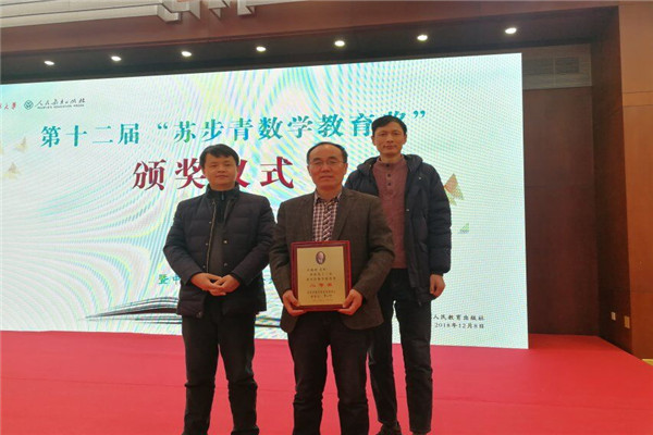 (卫德彬(中)在第十二届“苏步青数学教育奖颁奖仪式上)
