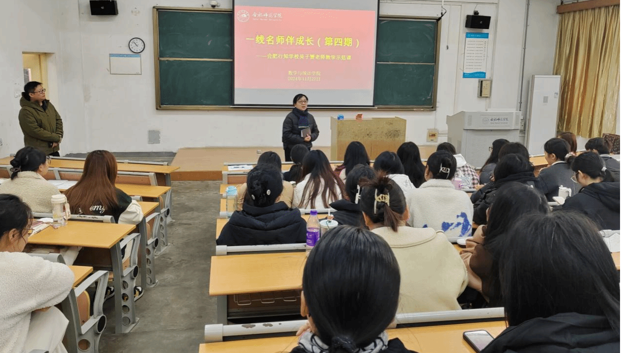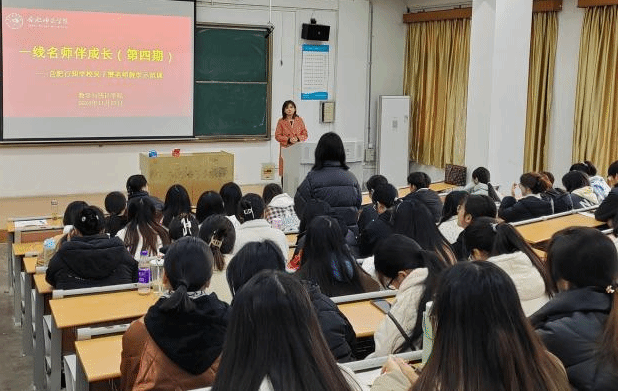 11月27日上午,AC米兰中文官方网站在锦绣校区博约楼112教室举办了“一线名师伴成长”第四期活动。此次活动邀请了第四届全国中小学青年教师教学竞赛一等奖获得者、安徽省第四届“教坛新星”、安徽省金牌职工、安徽省青年教育教学能手、合肥市优秀教师、合肥行知学校高级教师吴子赟老师为数学与应用数学专业师范生上了一堂初中数学示范课,并针对初中数学如何进行教学设计做了辅导讲座。数学系主任许和乾、课程与教学论教师栾庆芳、2022级数学与应用数学专业的全体学生参加了本次活动。
