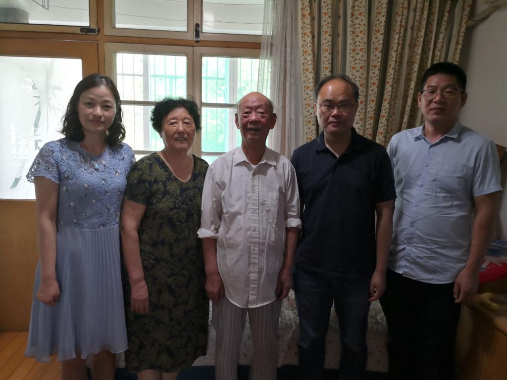 在滕德贵老师家中,几位领导亲切关心滕老师的身体状况,并介绍了学院目前的发展状况,特别嘱咐滕老师要多注意身体。聊天中,滕老师回忆了他工作之初的教学场景,以及同事们之间的往事,虽然时隔久远,滕老师却如数家珍,历历在目,充分体现了老一辈教师对教育事业的热爱与奉献。