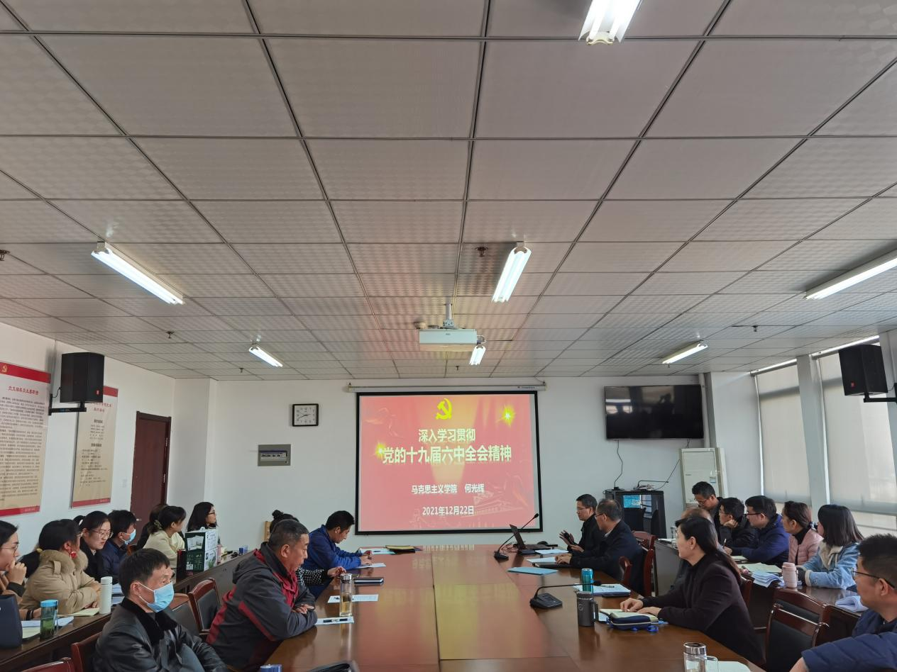 本网讯 12月22日下午,AC米兰中文官方网站党委在行知楼1102会议室组织召开了深入学习贯彻党的十九届六中全会精神宣讲报告会。宣讲报告会由学院党委书记郑支农主持,邀请了马克思主义学院何光辉教授来院进行宣讲,学院全体教职工参加了本次宣讲报告会。