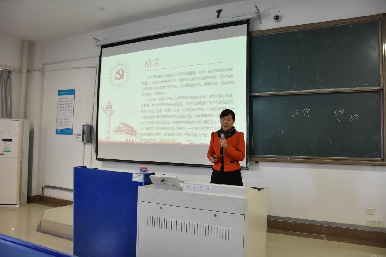 随后,郑支农以“知史爱党 永远跟党走——党的百年光辉历程”为主题,围绕党史学习教育开展第一讲。她首先强调了学习党史的重要意义,重点介绍了中国共产党的百年光辉历程,倡导学员们要知史爱党、永远跟党走,做到学史明理、学史增信、学史崇德、学史力行。她强调,开展党史学习教育,是不忘初心使命、推进中华民族伟大复兴历史伟业的必然要求,是坚定信仰信念、在新时代坚持和发展中国特色社会主义的必然要求,是推进党的自我革命、永葆党的生机活力的必然要求。广大学员要在党史学习教育中,不断坚定理想信念,从红色基因中汲取强大的信仰力量,进一步增强“四个意识”、坚定“四个自信”、做到“两个维护”。要认真践行党的初心使命,勇于攻坚克难。要坚持学党史、悟思想、办实事、开新局。要实学实干,在攀登知识高峰中追求卓越,在肩负时代重任时行胜于言,在真刀真枪的实干中成就一番事业。广大入党积极分子和发展对象要时刻以党员的标准严格要求自己,在学习党史、“党的基本知识”的同时一定要积极参加社会实践与志愿服务。坚定理想信念,锤炼党性修养,进一步端正入党动机,争取早日成为一名合格的共产党员。
