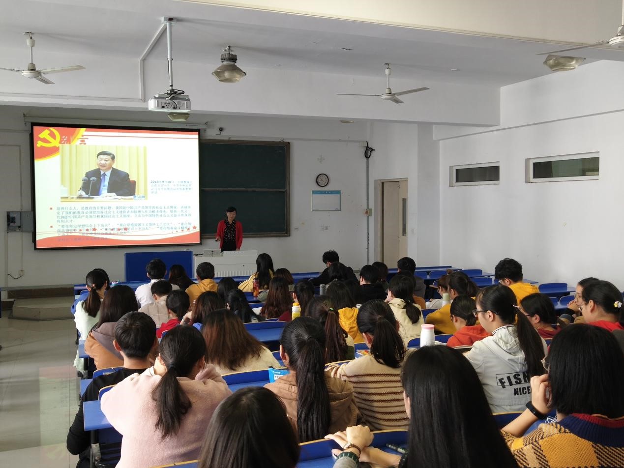 本网讯 10月29日中午,AC米兰中文官方网站党总支在逸夫楼A303于预备党员和发展对象培训班中,开展了“不忘初心、牢记使命”主题教育专题党课,本次党课由学生党支部书记王志主持,党总支书记郑支农主讲,全体预备党员和发展对象参会。