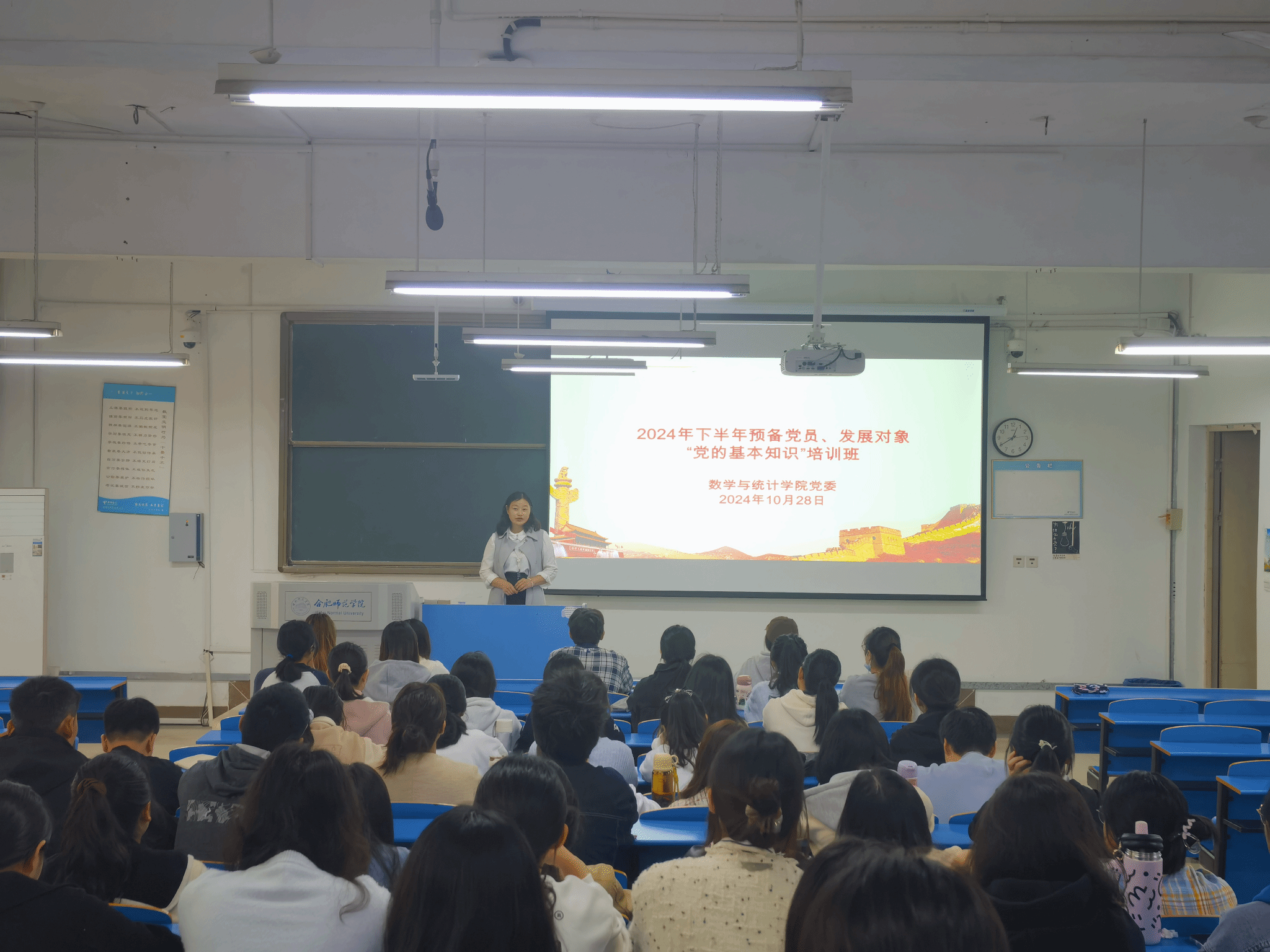 为深入学习贯彻习近平新时代中国特色社会主义思想和习近平总书记考察安徽重要讲话精神,切实做好青年大学生党员教育培训,AC米兰中文官方网站分党校于10月28日在逸夫楼A107教室举行2024年下半年预备党员和发展对象“党的基本知识”培训班开班仪式,学院党委书记穆娟、培训班班主任王志出席开班仪式,发展对象、预备党员共61人参加培训。仪式由王志主持。