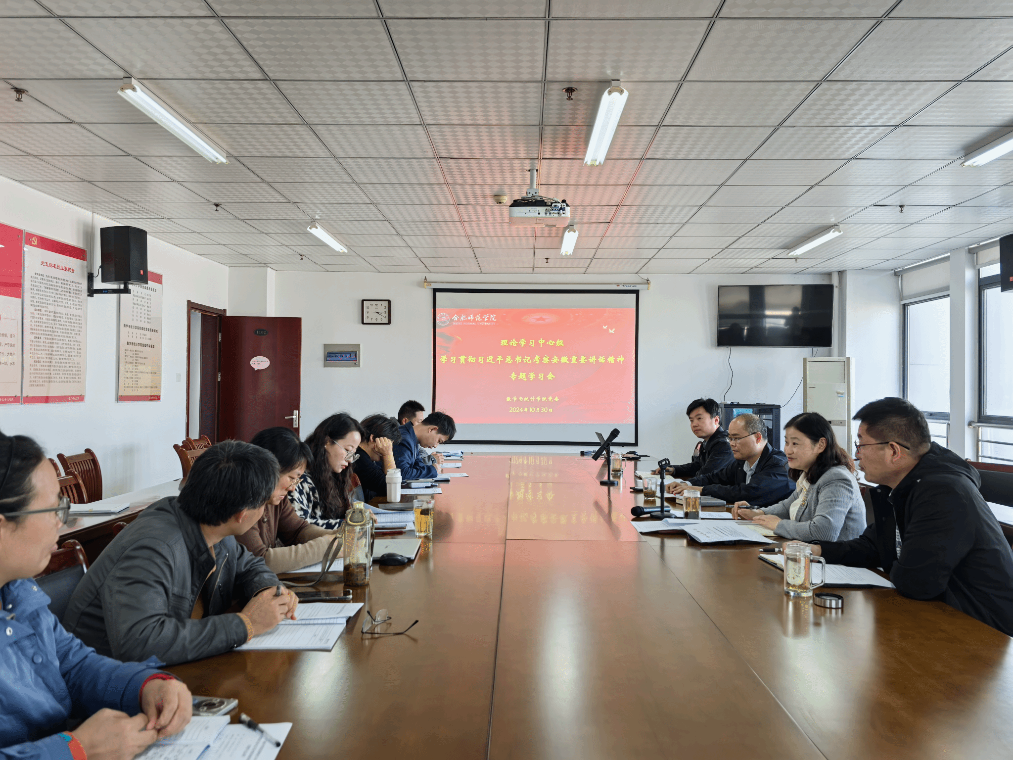 10月30日下午,AC米兰中文官方网站在行知楼1102会议室召开理论学习中心组学习贯彻习近平总书记考察安徽重要讲话精神专题学习会。会议由党委书记穆娟主持,理论学习中心组成员、各党支部书记参加。