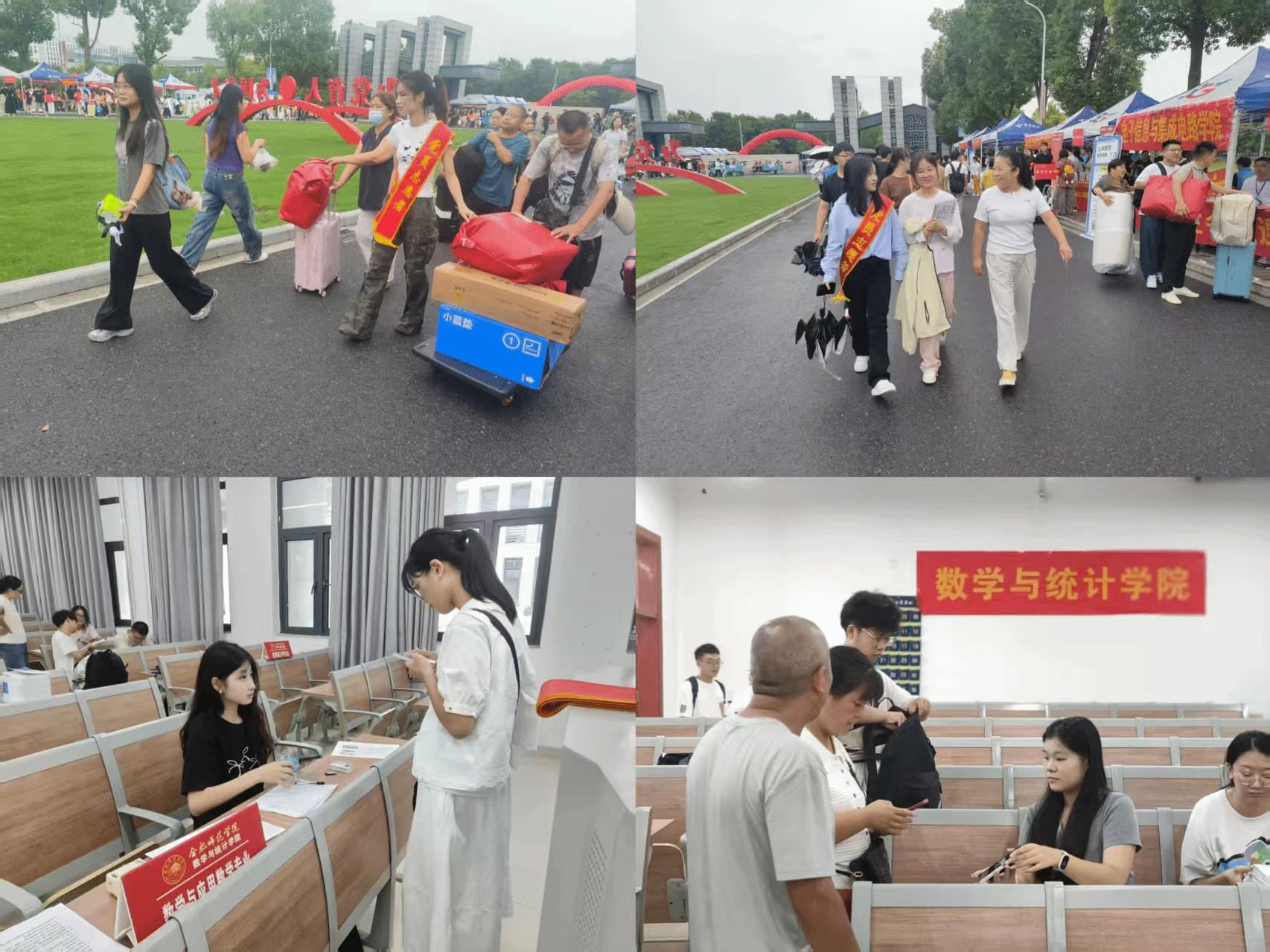 迎新当日,校园内洋溢着热烈的氛围。学院党委书记穆娟、院长杨刘、党委副书记杨尔飞早早来到迎新现场,与辅导员、党员教师代表及学生志愿者一同投入到紧张而忙碌的迎新工作中。学院报到点,迎新引导牌整齐排列,为新生指引方向。在新生报到处,工作人员耐心细致地为每一位新生办理入学手续,解答各类问题;志愿者们热情地帮助新生搬运行李,引导他们熟悉校园环境,从宿舍到食堂,从教学楼到图书馆,一路贴心讲解,让新生们感受到学院大家庭的温暖。学校领导亲赴锦绣、滨湖校区看望和了解学院报到情况,并对学院的工作给予指导和肯定。