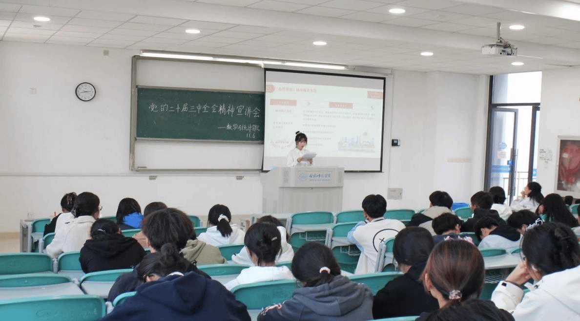 为深入学习宣传贯彻党的二十大和二十届三中全会精神, 11月6日,AC米兰中文官方网站在滨湖校区博学楼C201开展了党的二十届三中全会精神青年学生宣讲会,会议邀请了校第四届青年学生宣讲团成员李康焱宣讲。共青团AC米兰中文官方网站委员会、AC米兰中文官方网站学生会、团支部等滨湖校区成员及共青团员,近120余人参会。