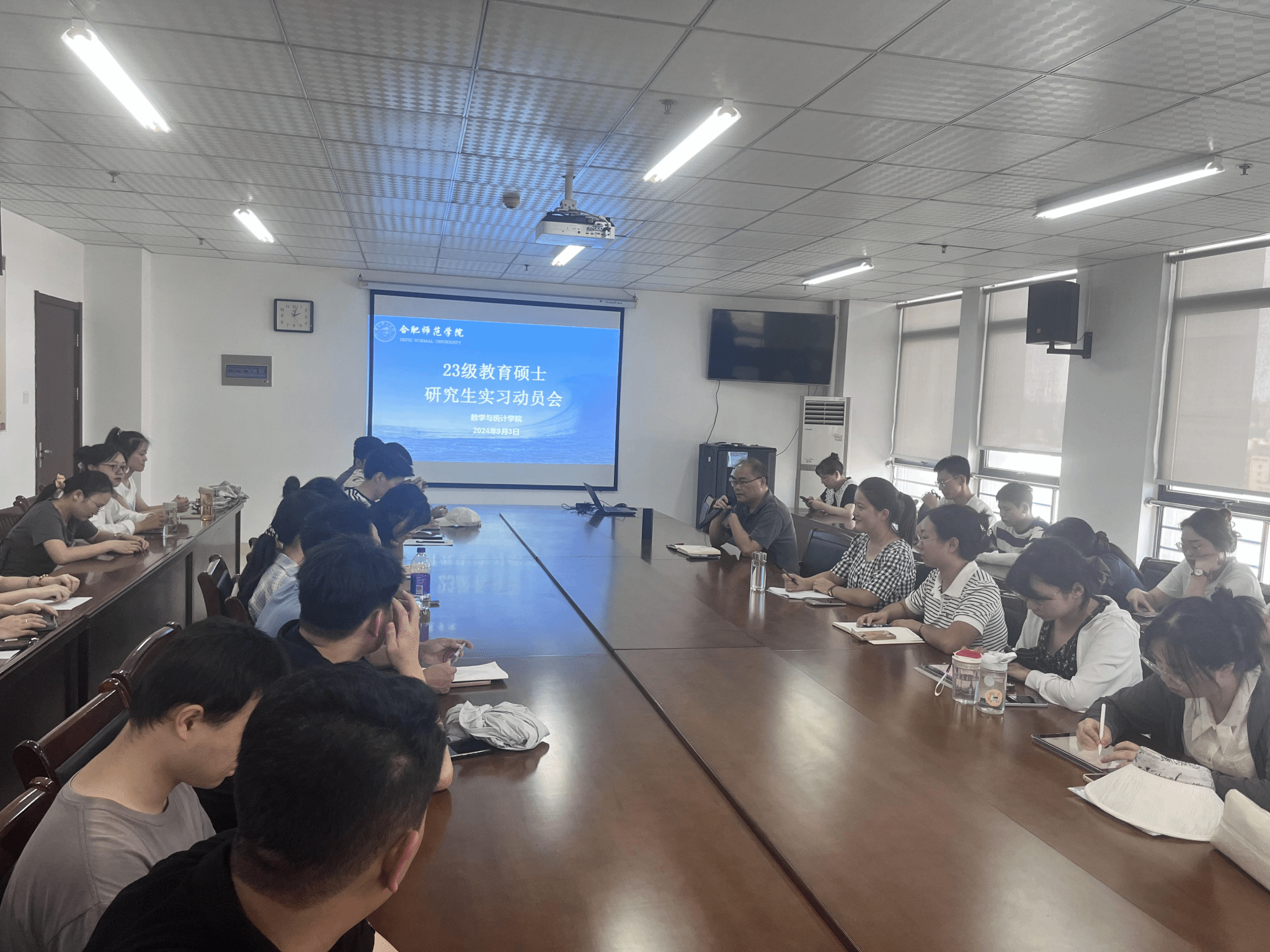为做好2023级研究生教育实习工作,9月3日,AC米兰中文官方网站在行知楼1102会议室召开教育硕士研究生实习动员会,会议由院长杨刘主持,教学秘书刘莲及2023级42名研究生参加会议。