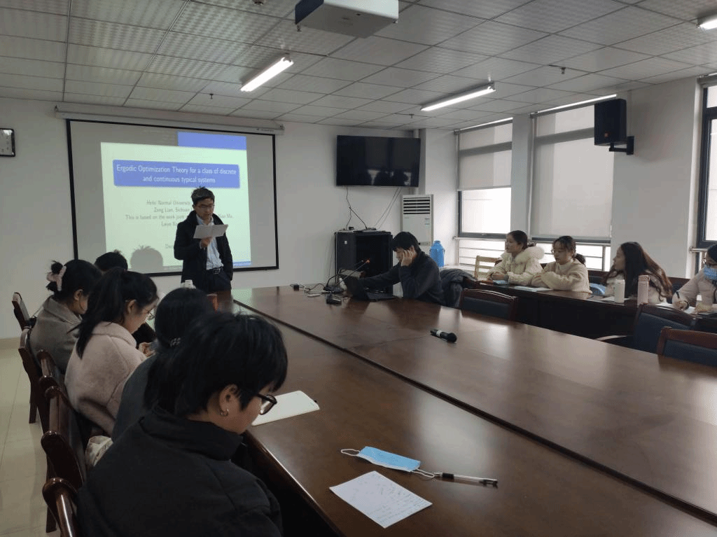 7日上午,黄文教授与连增教授分别作"非自治动力系统与遍历优化"专题学术报告,报告由AC米兰中文官方网站周辉博士主持。AC米兰中文官方网站部分教师、研究生和安徽大学部分博士生与硕士生聆听了报告。黄文教授作了题为《Lyapunov optimizing measures and periodic measures for C2 expanding maps》的学术讲座。黄文教授先从动力系统与遍历优化概念来源谈起,深入浅出讲解了马蹄、熵理论、弱马蹄等动力系统中的重要成果,介绍了与其合作者在该领域取得进展。随后,连增教授作题为《一类斜积双曲系统的动力学性质》的学术讲座。连增教授首先介绍了斜积动力系统与随机动力系统的产生背景和基本理论。通过对确定系统与随机系统的区别与联系进行深刻比较,引入随机周期轨以及随机马蹄等重要概念,同时介绍了其与合作者在随机马蹄刻画方面取得的重要成果。报告会后,两位专家对师生们提出的问题作了详细解答。两场学术报告既有很高的理论水平,也给出了对于具体问题的研究方法与技巧,使与会师生感到受益匪浅。
