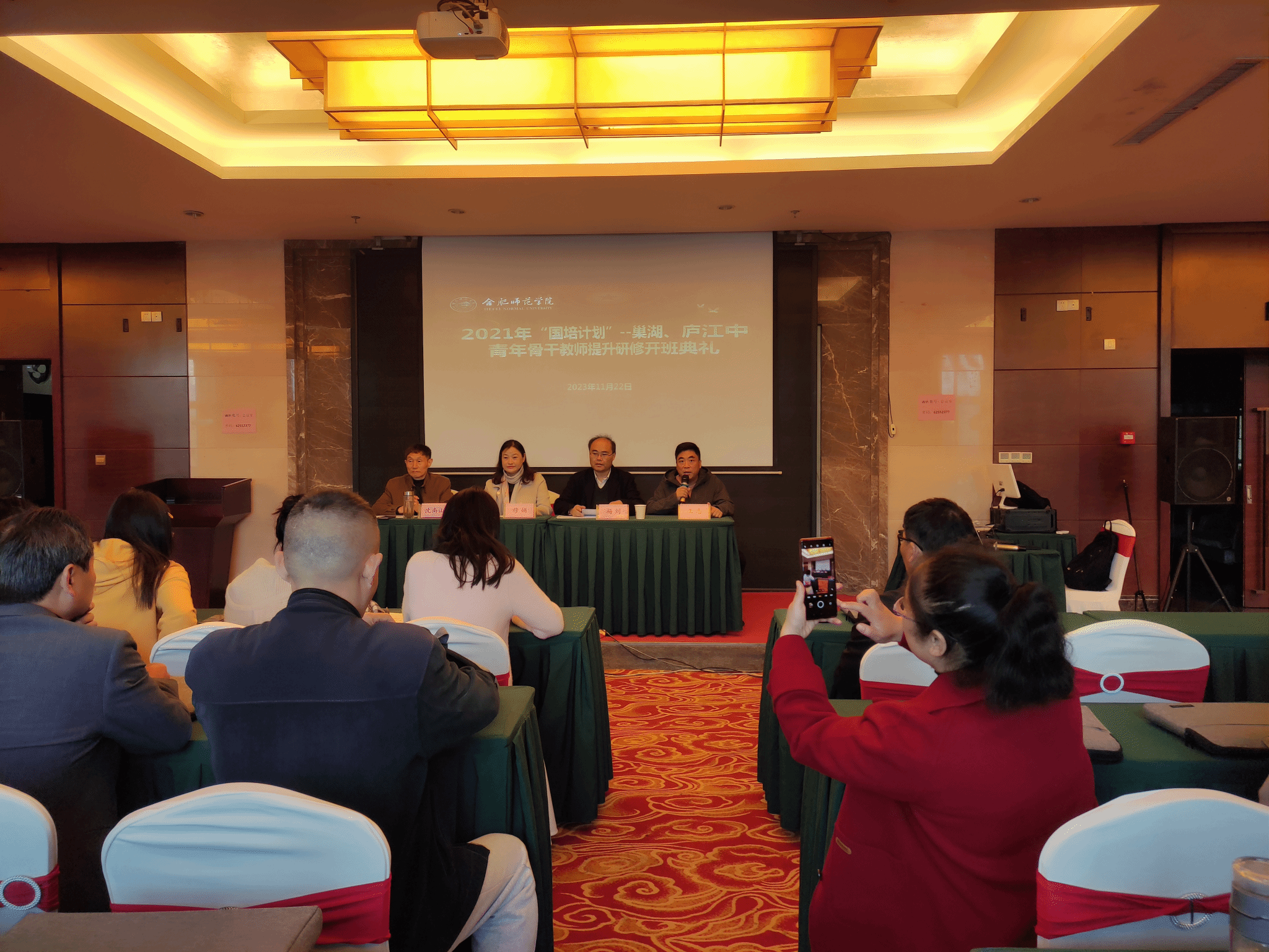 2023年11月22日上午,由AC米兰中文官方网站承办的巢湖市、庐江县2021年“国培计划”--中青年骨干教师提升研修(数学学科)2023年第三期集中培训班在天宫国际大酒店举行开班典礼,AC米兰中文官方网站党委书记穆娟、副院长杨刘、项目负责人沈南山和来自巢湖市、庐江县的全体参训学员出席了典礼,典礼由班主任王志主持。