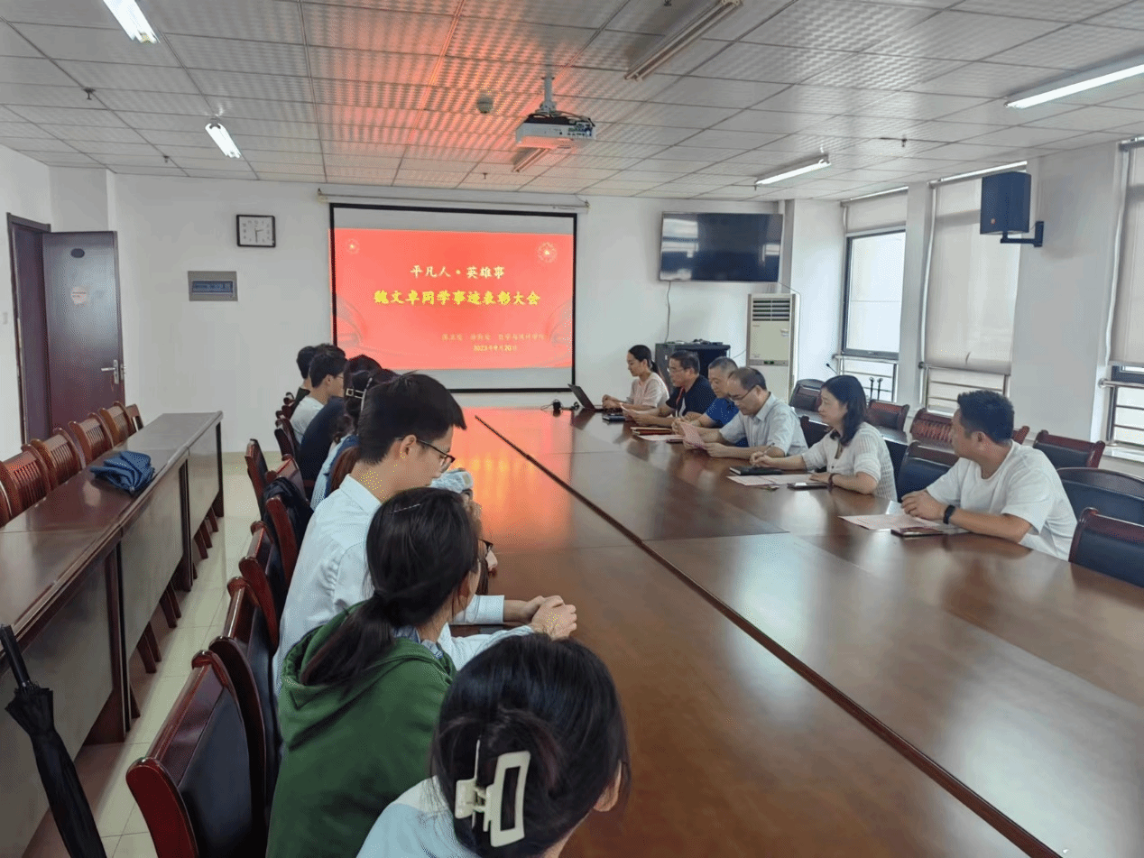 本网讯 9月20日在行知楼1102会议室,学院保卫处、后勤处、AC米兰中文官方网站召开魏文卓同学事迹表彰大会,出席表彰大会的有后勤处党总支书记傅民、AC米兰中文官方网站党委书记穆娟和副院长杨刘、保卫处副处长束道锋、后勤处沈振华、AC米兰中文官方网站辅导员和部分班级同学代表参加。表彰大会由穆娟主持。
