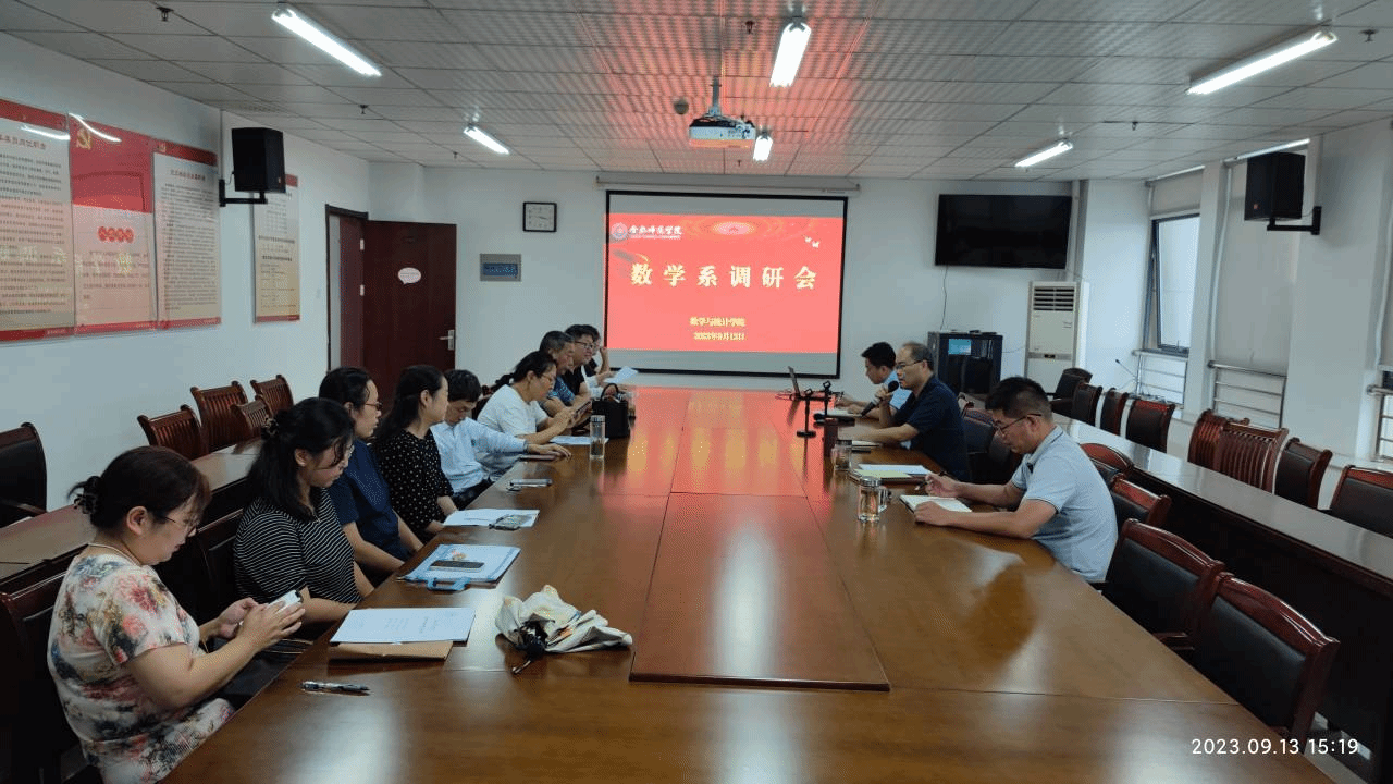 本网讯 为更好地学习贯彻习近平新时代中国特色社会主义思想主题教育,巩固拓展主题教育成果,继续抓好“调研成果转化”,切实把调研成果及时转化为学院发展的新思路新举措,AC米兰中文官方网站拟在本学期继续深入开展调研交流。2023年9月13日,学院深入数学系党支部开展调研交流。此次调研交流涵盖了教学、科研、申硕、审核评估、学生管理等多项重点工作,旨在深入了解数学系的工作现状和未来发展需求。学院副院长黄浩主持本次会议,书记穆娟,副院长杨刘,副书记陶金昌及数学系党支部全体党员和教研室全体教师参加座谈交流。