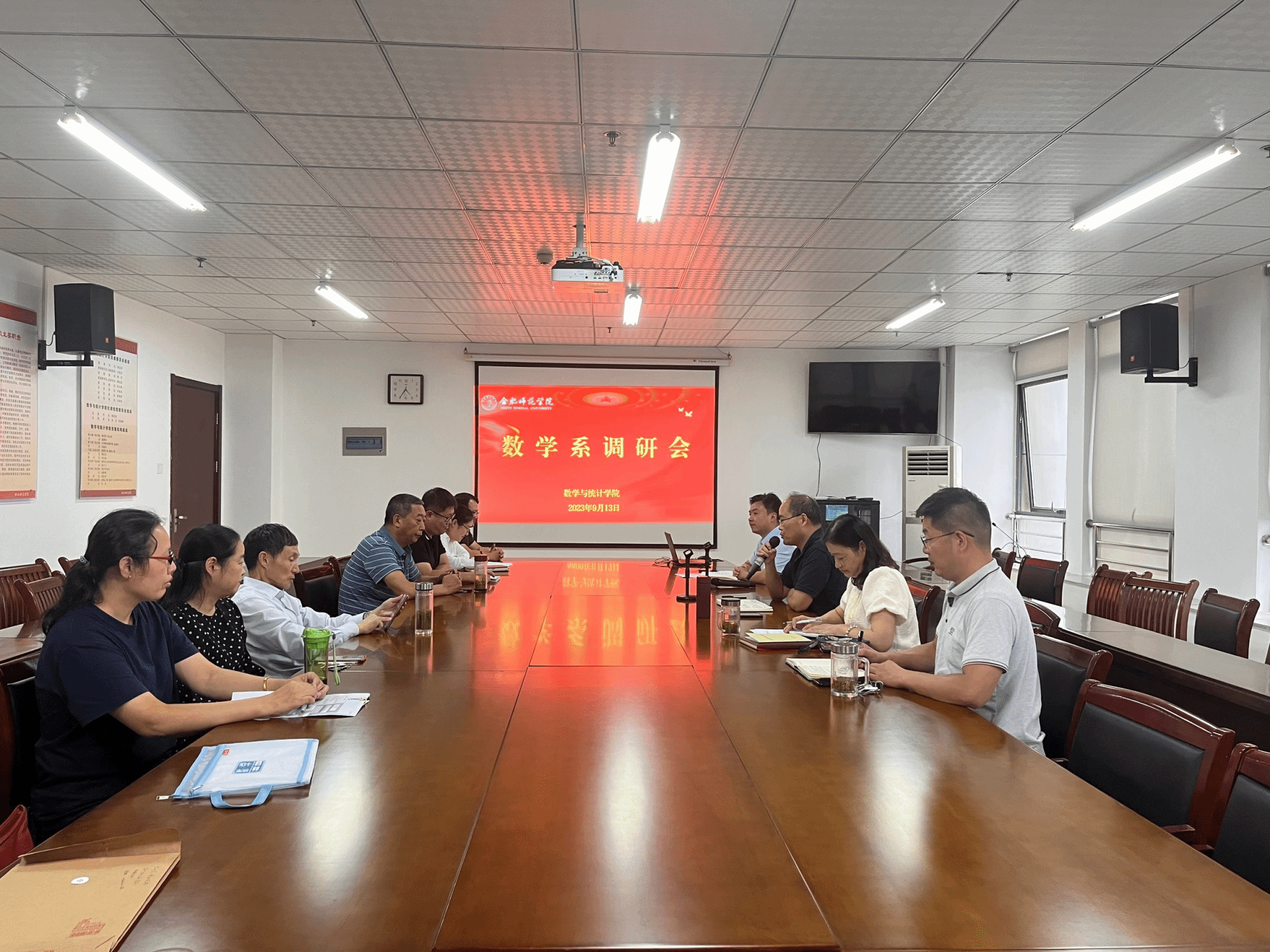 在本次调研中,学院领导与数学系的全体教师进行了深入交流,探讨了教工党支部推动党建与业务融合发展、教育教学和科学研究的热点问题,共同探讨未来的发展方向。就教学、科研、申硕、审核评估、学生管理、数学专业学风建设等方面进行了深入调研,认真听取了每位教师的意见及建议,分析了当前工作的优势与不足,提出了加强和改进各项工作的具体举措。