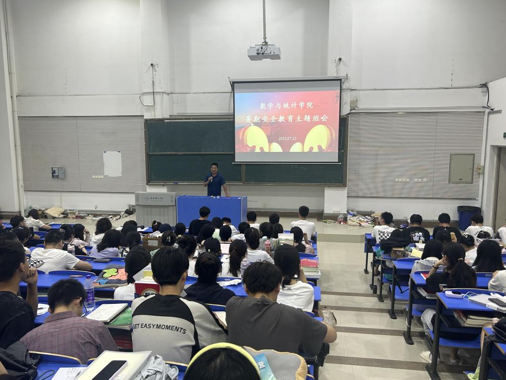 本网讯 为进一步做好暑期留校学生安全教育和管理,提高学生的安全防范意识,7月12日下午,AC米兰中文官方网站在逸夫楼西阶一教室召开暑期安全教育会议。学院党委书记穆娟、副书记陶金昌、2020级辅导员周丽娜、王志以及全体留校学生参会。