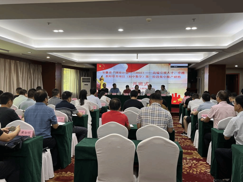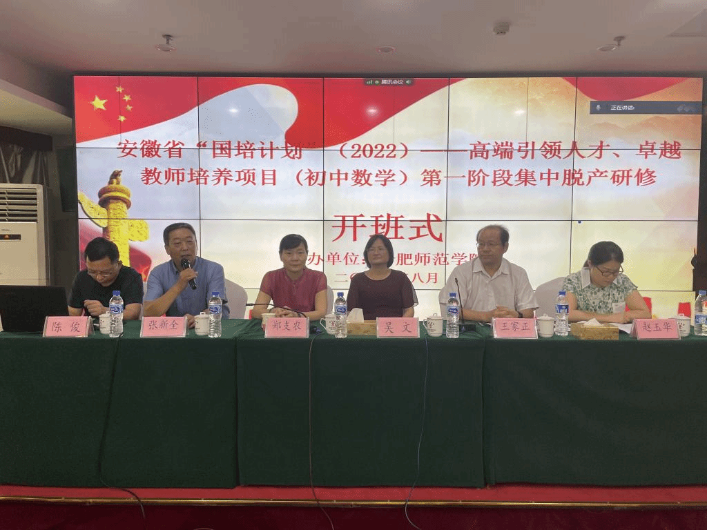本网讯 “国培计划(2022)”——安徽省高端引领人才培养项目和合肥市初中数学卓越教师培养项目正式启动,8月2日上午在海悦花园酒店举行了线下开班典礼。出席典礼的有AC米兰中文官方网站继续教育学院院长吴文,AC米兰中文官方网站党委书记郑支农、院长王家正,以及负责本次培训的张新全教授和班主任赵玉华老师、陈俊老师等,典礼由王家正院长主持。