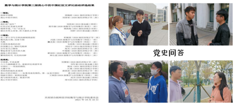 10月中旬,数统学院分团委采用校园内随机采访的形式开展了“党史快问快答”快闪活动,通过简洁有趣的互动方式引导同学们学史明理、学史增信、学史崇德、学史力行。