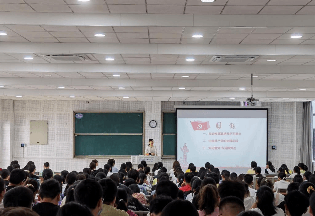 9月7日上午,学院党委书记郑支农以《知史爱党,知史爱国》为主题,围绕党史发展脉络为新生们开展了一场精彩的入党启蒙教育,引导同学们了解中国共产党的优良传统和革命传统,教育同学们要知史爱党,知史爱国,感党恩、听党话、永远跟党走,引导他们积极向党组织靠拢,牢记青春使命,让青春在为祖国、为民族、为人民、为人类的不懈奋斗中绽放绚丽之花。