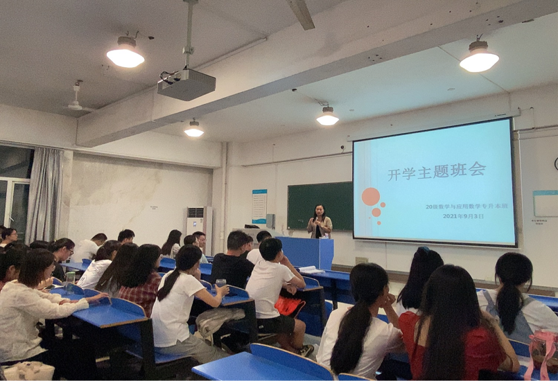 各班级辅导员在班会上宣传了疫情防控、反诈骗、安全卫生等等常识和要求;解读了困难学生资助、大学生医保规定和政策;对综合素质测评、评奖评优、门诊及住院报销等具体工作做了说明和要求;毕业班辅导员还着重对就业、考研升学等进行了指导。新生班级的入学教育,于6日全面展开。