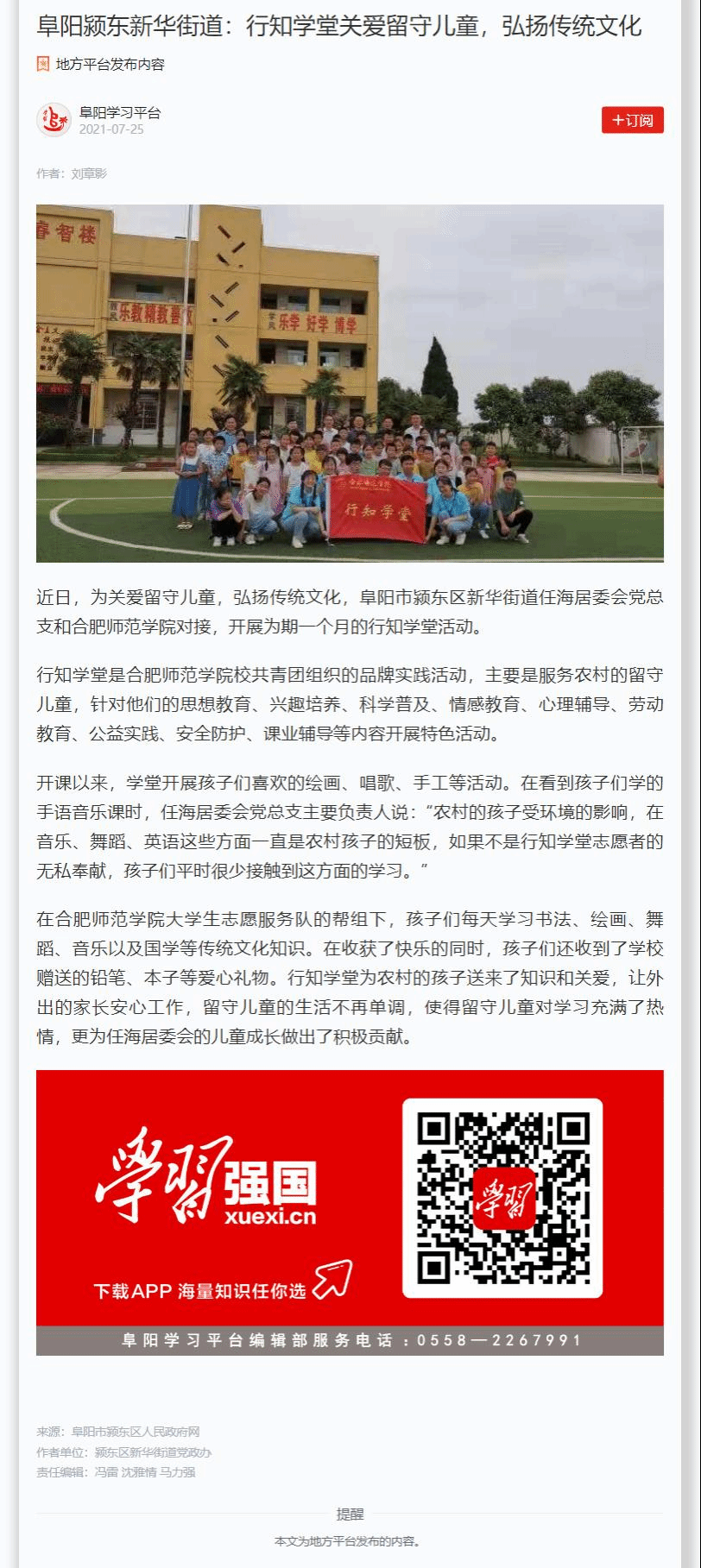7月25日,“学习强国”阜阳学习平台对此进行了报道。(AC米兰中文官方网站:刘全亚)