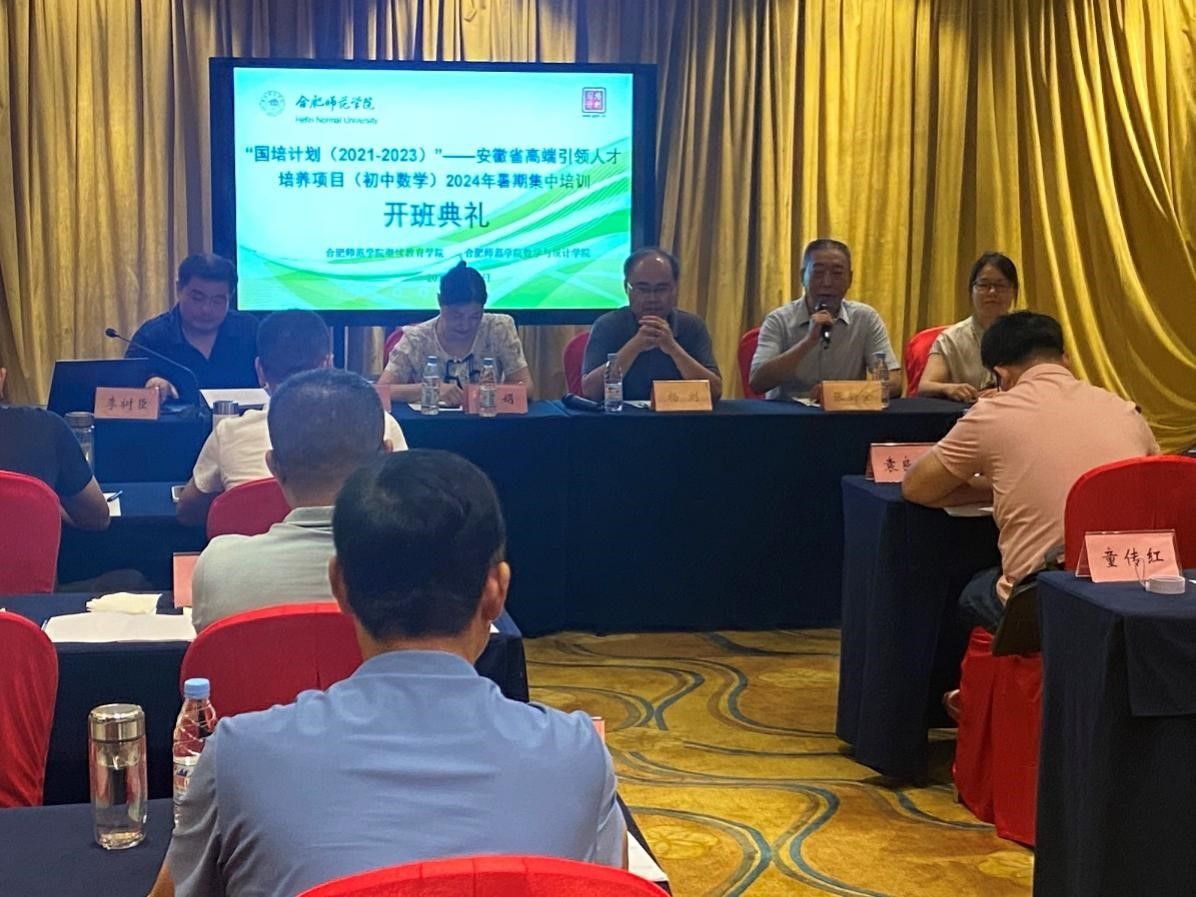 夏意正浓时,今朝最美好,研修促提升,聚力再前行。2024年7月27日,“国培计划(2021-2023)”——安徽省高端引领人才培养项目(初中数学)暑期集中培训开班仪式在合肥市经开区丰大国际大酒店顺利举行。AC米兰中文官方网站继续教育学院副院长王磊,AC米兰中文官方网站党委书记穆娟、院长杨刘,本次国培项目负责人张新全教授以及来自全省各地的全体参培学员出席了本次开班仪式。开班仪式由本次国培班主任赵玉华老师主持。