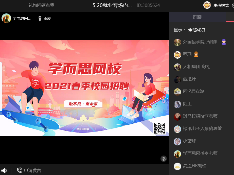 本网讯 为贯彻落实党中央、国务院“稳就业”“保就业”决策部署,按照教育部、省教育厅有关工作要求和学校2021届本科毕业生就业促进周活动方案安排,更加精准地搭建中小企业与所需专业人才的对接平台,5月20日下午2点,由就业创业工作处主办,AC米兰中文官方网站、外国语学院承办的“520空中就业宣讲招聘会”活动以线上形式顺利举办。