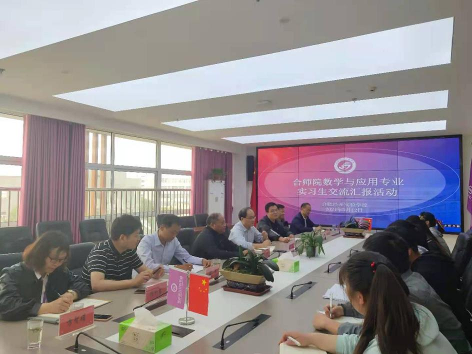 经开实验学校邵忠德校长对学院2021届实习生前一阶段的实习表现给出了充分肯定,对实习生教学实践与教学理论进一步结合、新技术与教育教学的融合等提出了更高期望。梁贺副校长详细介绍了实习以来毕业生的表现,特别对实习生在学校针对后进生开展的补差提优工作辛勤付出和良好效果给出了高度评价。同学们也纷纷发言,介绍实习以来的收获、感受,也就关心的问题和老师们进行了交流。杨刘在会上对经开实验学校为实习生提供很好的实习平台、高水平的指导和对大家在学习、生活上照顾表示衷心的感谢,要求大家在总结上一阶段实习工作的基础上不断学习、勤于思考、积极实践,在备课、上课、班级管理上不断提高水平。