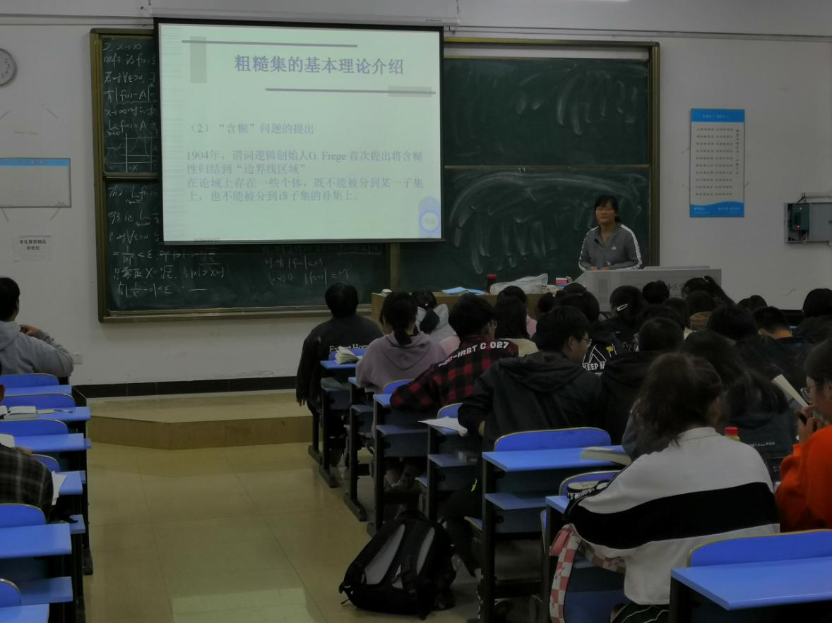 在交流互动环节,徐文婷认真回答了同学们就粗糙集理论应用方面的问题。