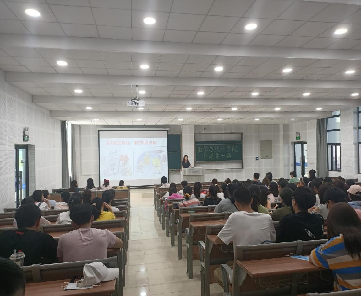本网讯 为加强学生自我防范意识,提高学生学习积极性,9月5日上午,AC米兰中文官方网站在滨湖校区博学楼A108教室举行新学期“开学第一课”主题班会。此次主题班会由辅导员刘全亚老师主持,AC米兰中文官方网站2019级全体学生参加。